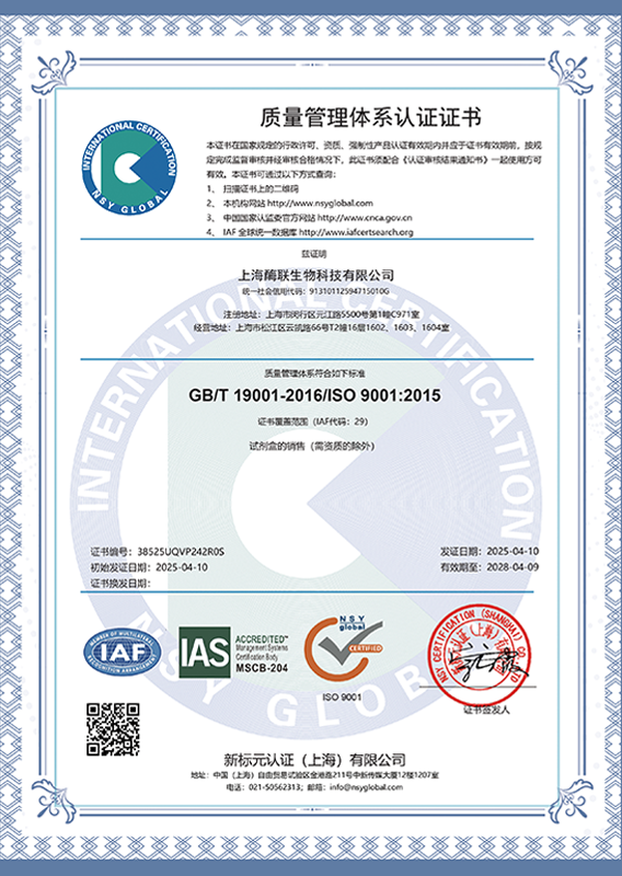 上海酶聯(lián)生物科技有限公司經(jīng)過數(shù)年的努力發(fā)展已迅速成為集產(chǎn)品研發(fā)、生產(chǎn)、經(jīng)營為一體的專業(yè)化生物工程公司。公司具有完善的實(shí)驗(yàn)技術(shù)開發(fā)平臺(tái),成熟的抗原、抗體研發(fā)系統(tǒng),熟練掌握各種酶聯(lián)技術(shù),結(jié)合公司的研發(fā)團(tuán)隊(duì),可以有效的保證公司產(chǎn)品強(qiáng)的穩(wěn)定性和高的準(zhǔn)確性,同時(shí)又具有競爭力的價(jià)格。