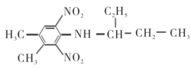 二甲戊靈屬二硝基苯胺類除草劑,分子式為 C13H19N3O4,分子量為 281.3,純品為橙黃色結(jié)晶體。主要抑制分生組織細胞分裂,不影響雜草種子萌發(fā),而是在雜草種子萌發(fā)過程中幼芽、莖和根吸收藥劑后起作用。