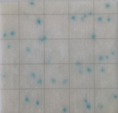 在測試片紙片上生長的藍(lán)綠色點(diǎn)即為單增李斯特菌陽性,若紙片上不生長或者為其他顏色點(diǎn)即為單增李斯特菌陰性。